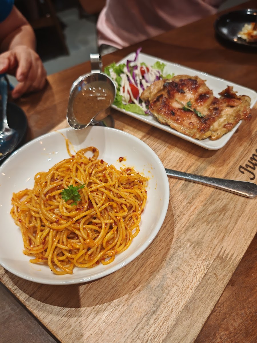 June Coffee Grill & Spaghetti in Taman Kluang Perdana is a neighborhood cafe where casual dining blends effortlessly with a relaxed, cozy vibe. Located on Jalan Kluang Perdana 23, this spot feels like a comfortable pit stop for both locals and visitors looking for a laid-back meal that bridges Western and local preferences within a simple, approachable setting.